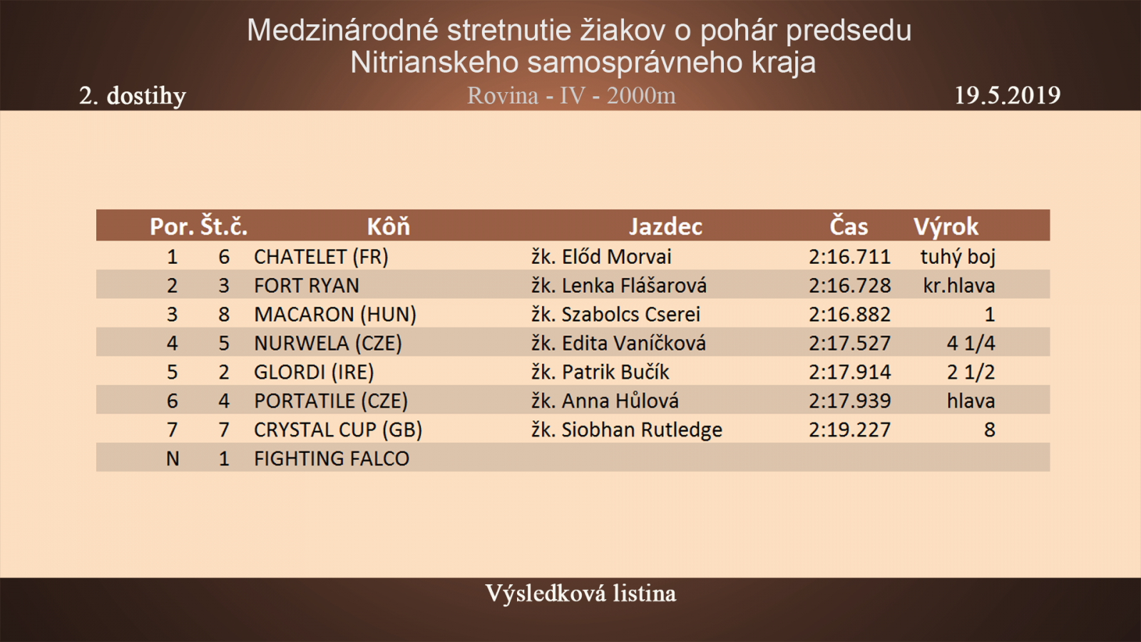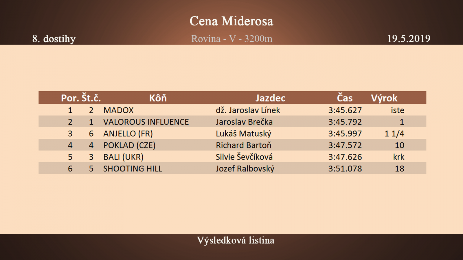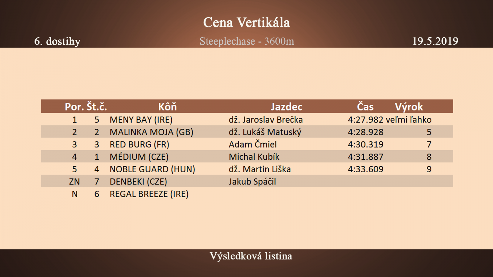 | Dozor Hlavnej dostihovej komisie | Mgr. Stanislav Matulík |