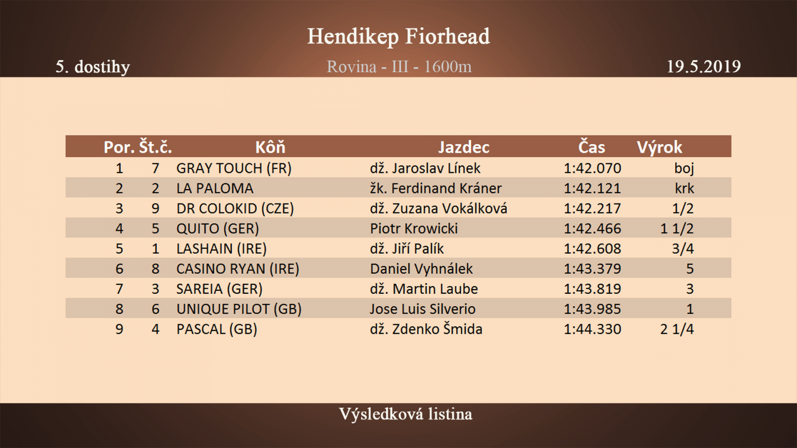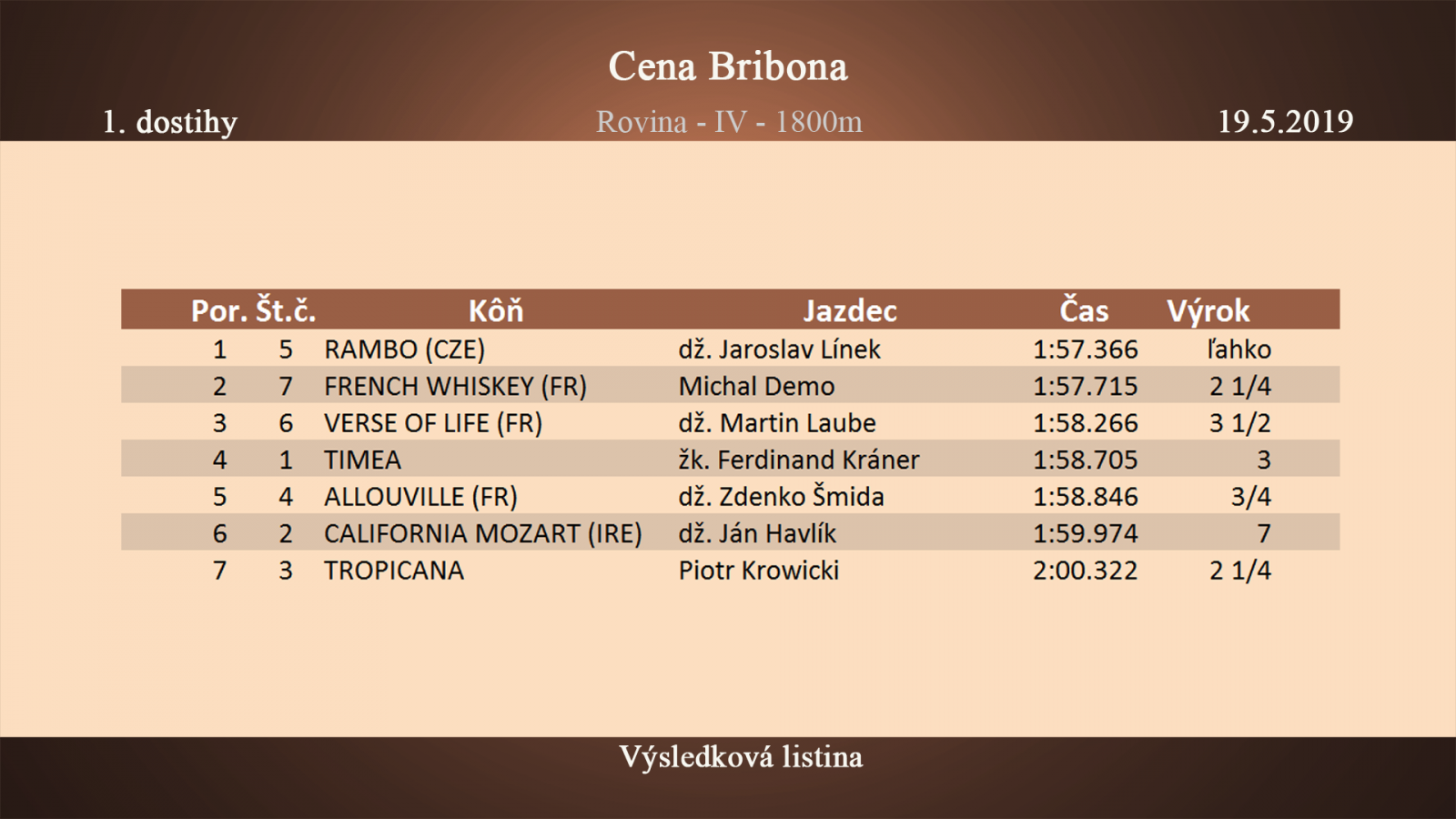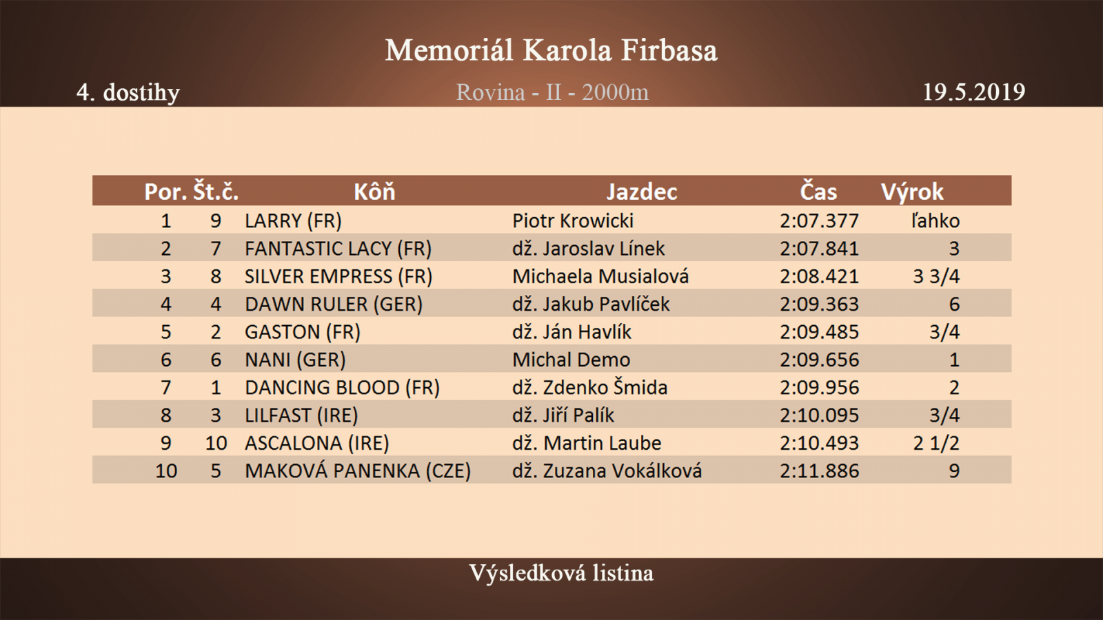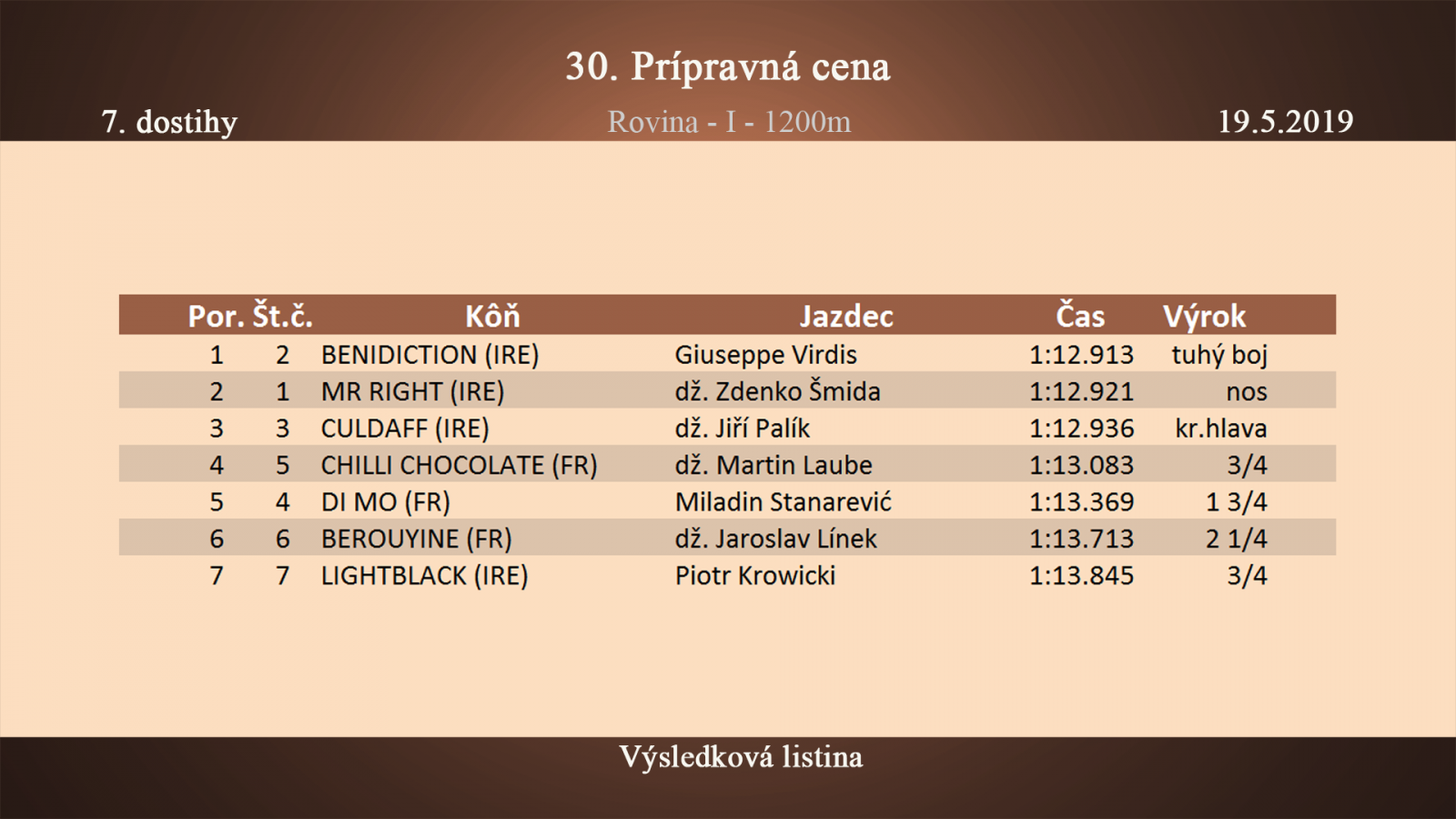 | Dozor Hlavnej dostihovej komisie | Mgr. Stanislav Matulík |